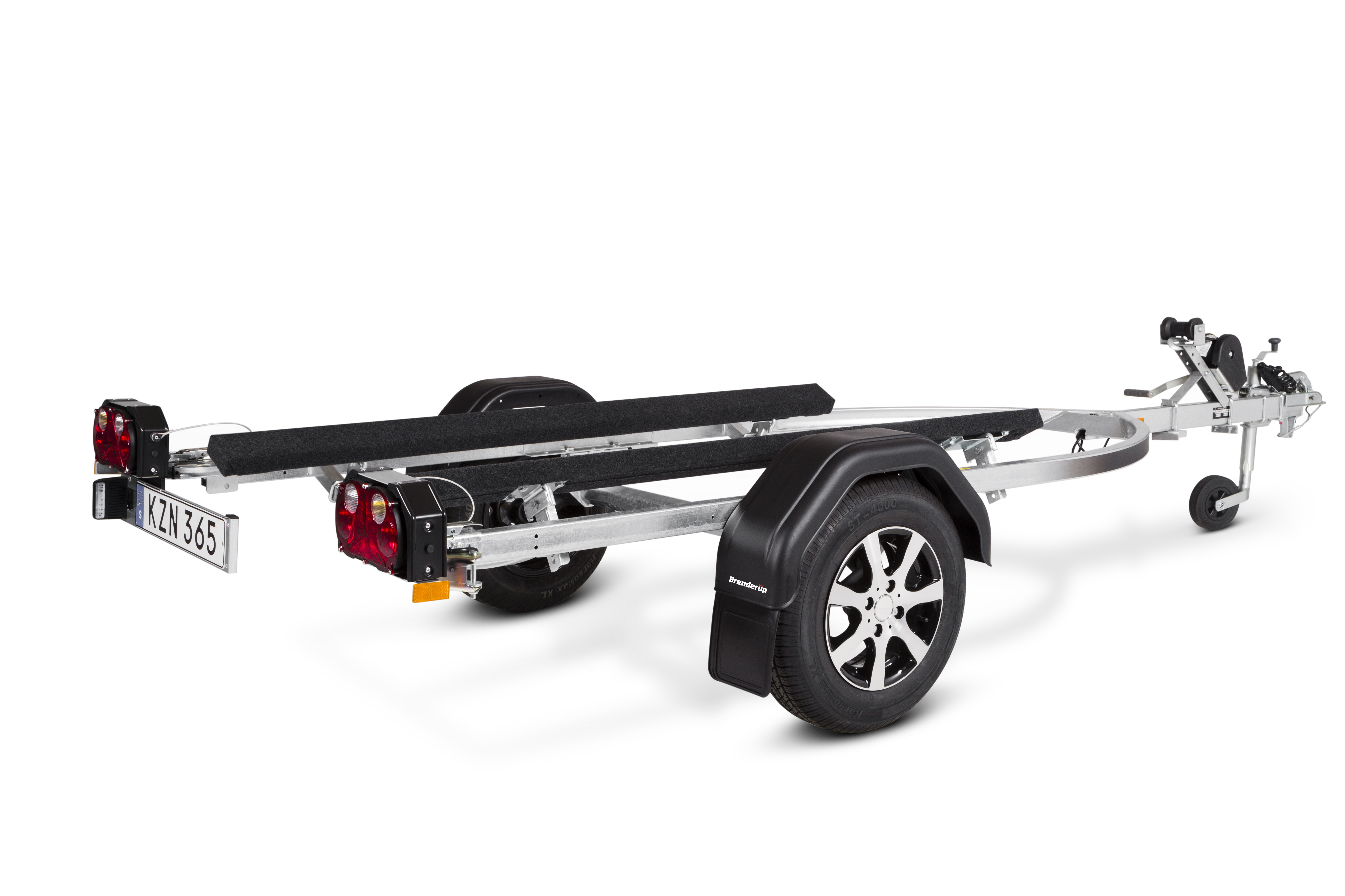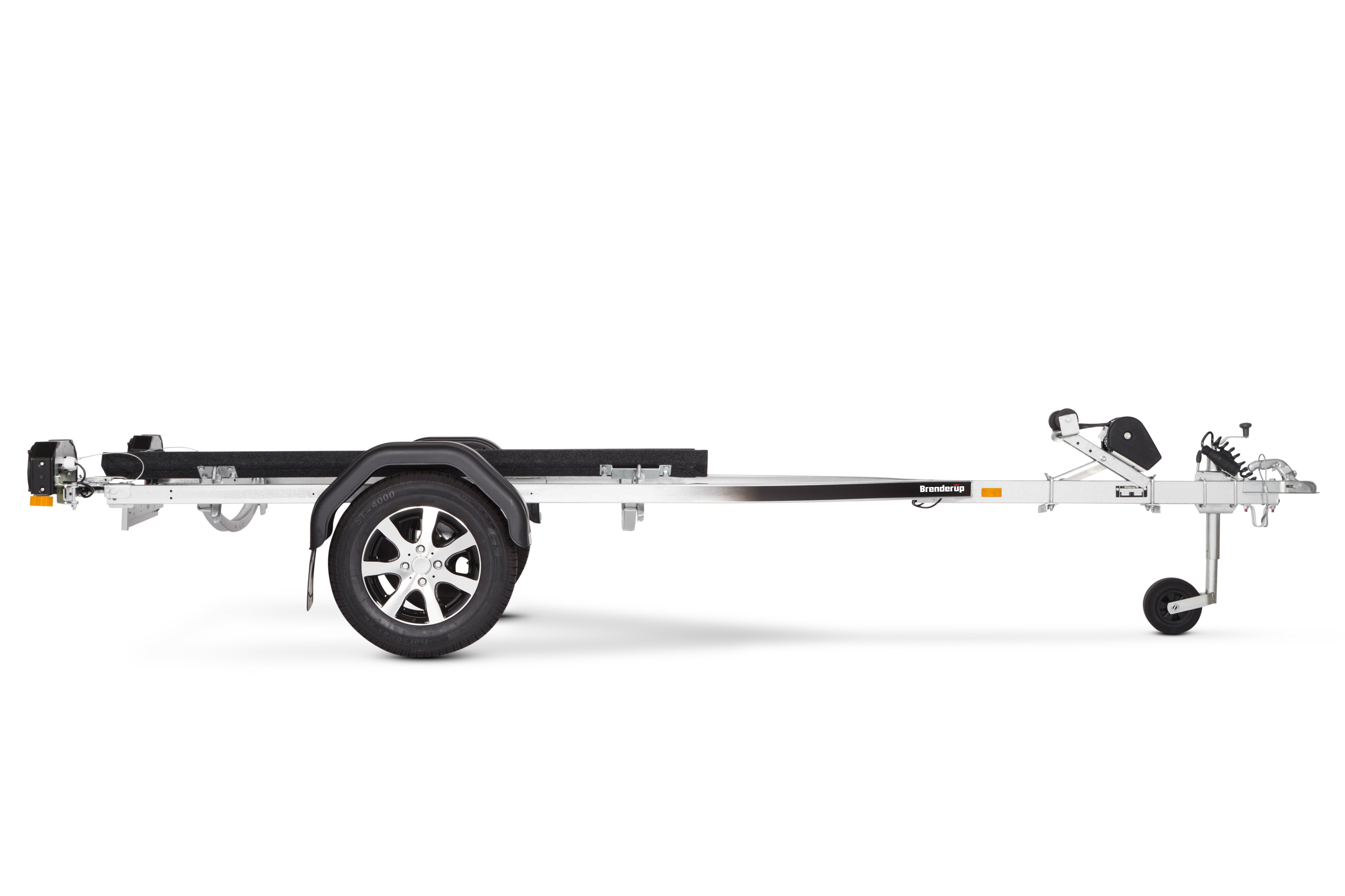 Brenderups trailer til vandscooter er udviklet til at beskytte skroget på din vandscooter, når du laster den på traileren eller søsætter den i vandet. Med de separate lygtekonsoller bliver af- og pålæsning endnu nemmere. Trailerens skinner er beklædt med et unikt materiale, som sikrer lav friktion og nem søsætning af din vandscooter. Lukket spil og spiltårn, som kan justeres i både højde og længde. Traileren på billedet kan være vist med ekstraudstyr.